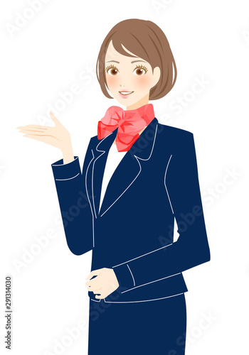 案内をしているキャビンアテンダント スチュワーデス グランドスタッフ 女性 のイラスト フリーイラスト素材 Kukukeke ククケケ